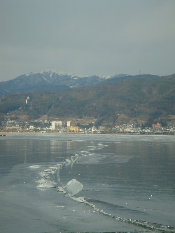 一番氷のたっている御神渡り全体はこんな感じ。
