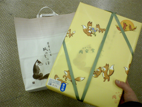 銘菓「狐のしっぽ」は、世界の鱈の2名が「藍さま~~v」とか言いながら、もふもふ美味しくいただきました。