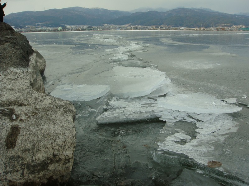 一番氷のたっている御神渡り全体はこんな感じ。
