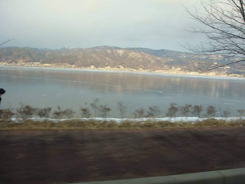 雪と湖面の境目が見えなくて、近くに寄りたくても少々怖い感じ。
