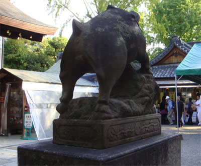 ここはなんと狛犬ではなく、雌雄一対の狛猪があちこちに。